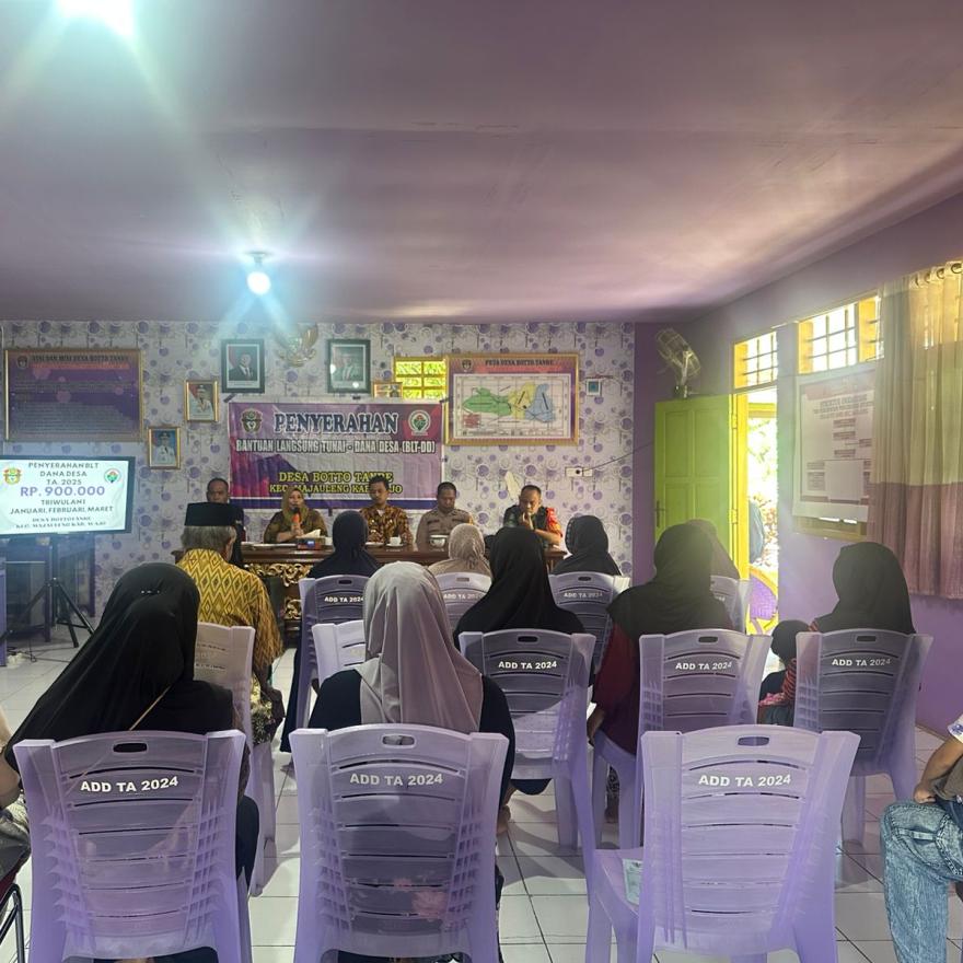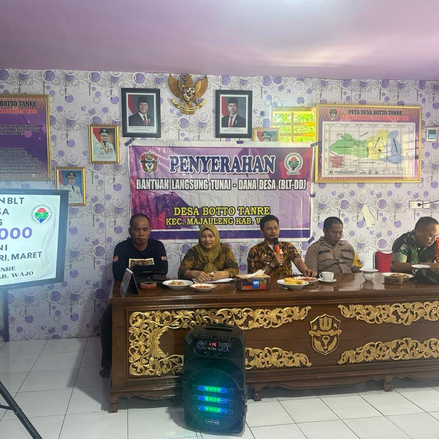 Kepala Desa Botto Tanre, Hj. Besse Erfianti, S.Sos, dalam sambutannya menyampaikan bahwa bantuan ini merupakan bentuk kepedulian pemerintah terhadap masyarakat yang terdampak secara ekonomi. Beliau berharap agar bantuan ini dapat dimanfaatkan untuk mencukupi kebutuhan pokok sehari-hari.